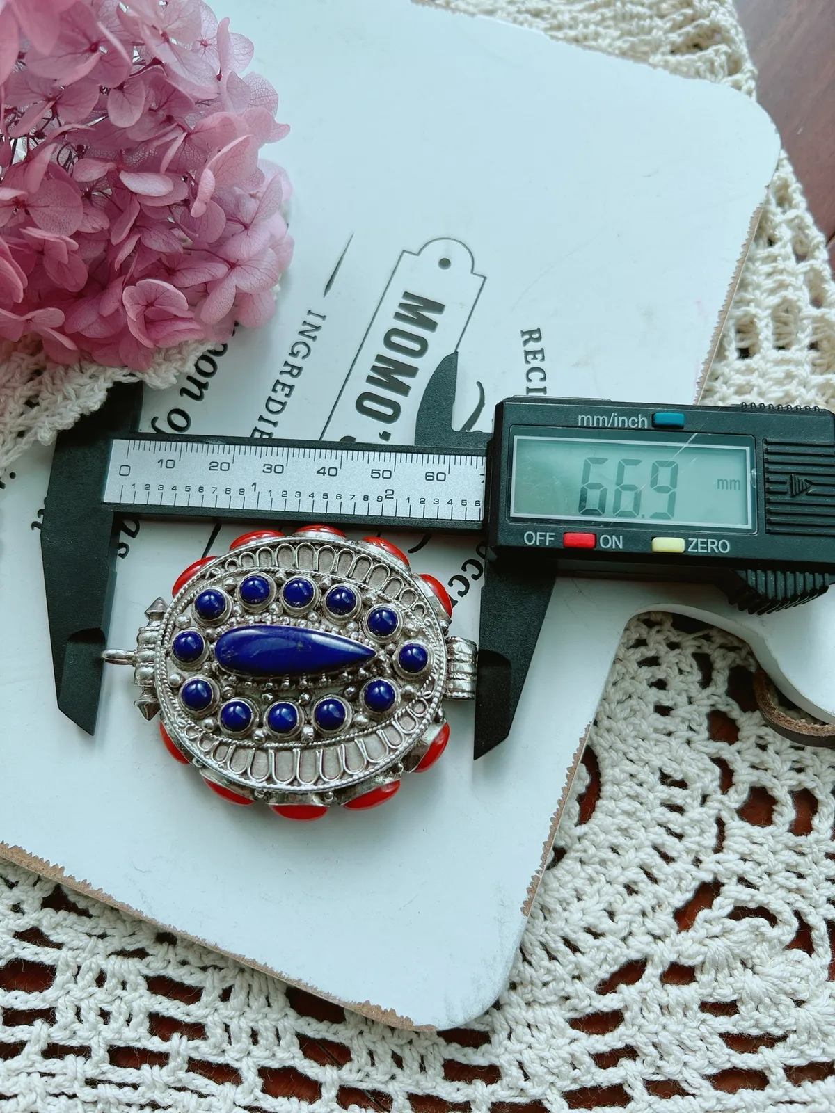 珊瑚青金石嘎嗚墜