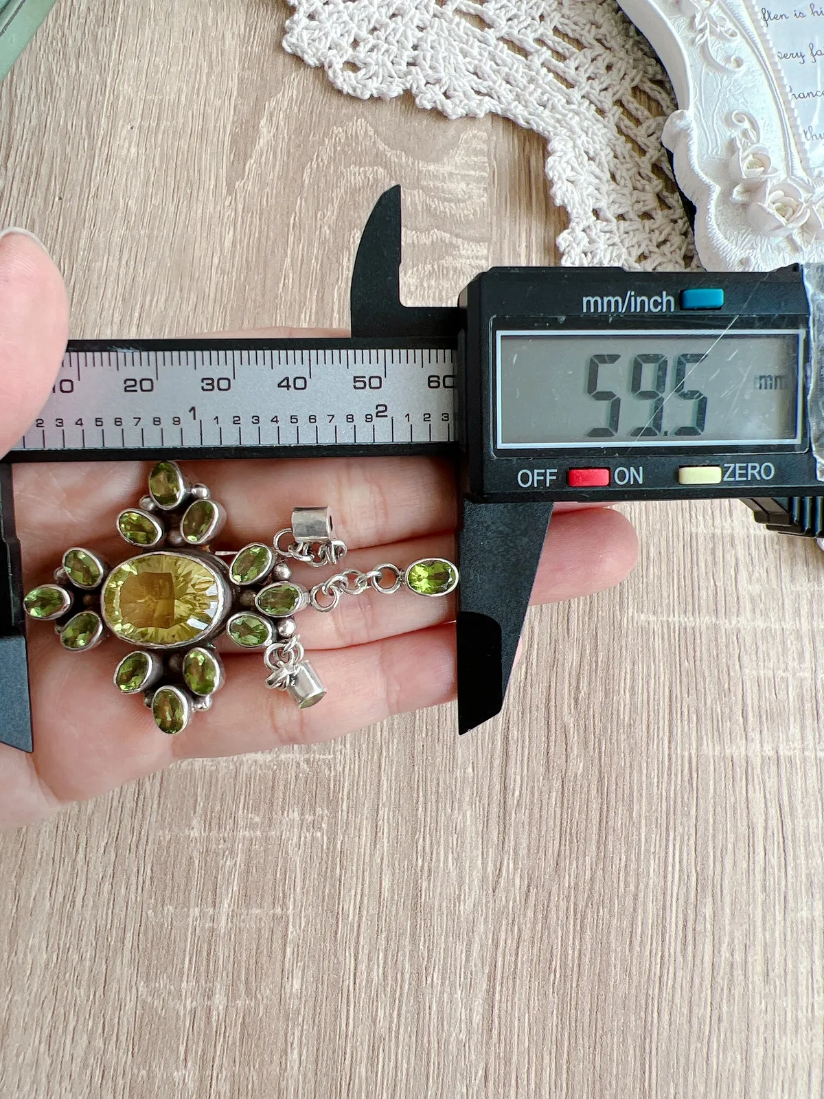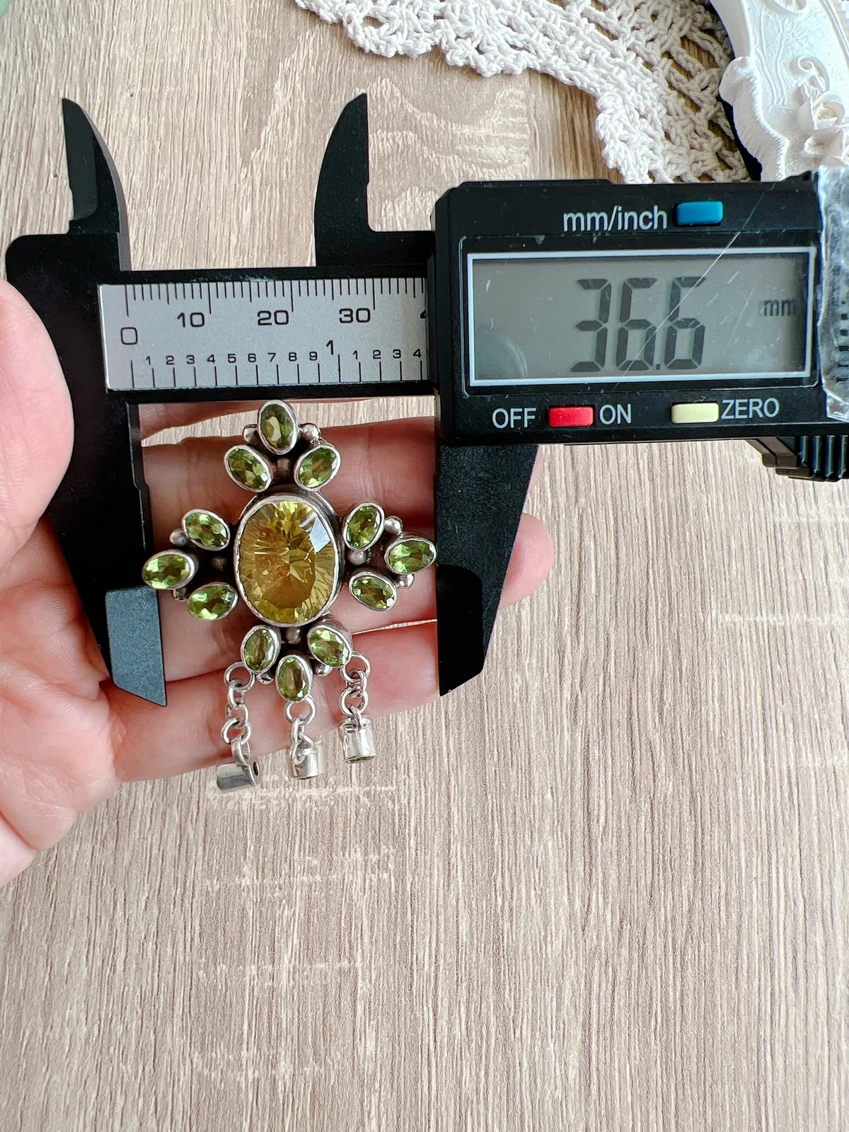 尼泊爾-綠石榴石、檸檬黃水晶 別針吊墜